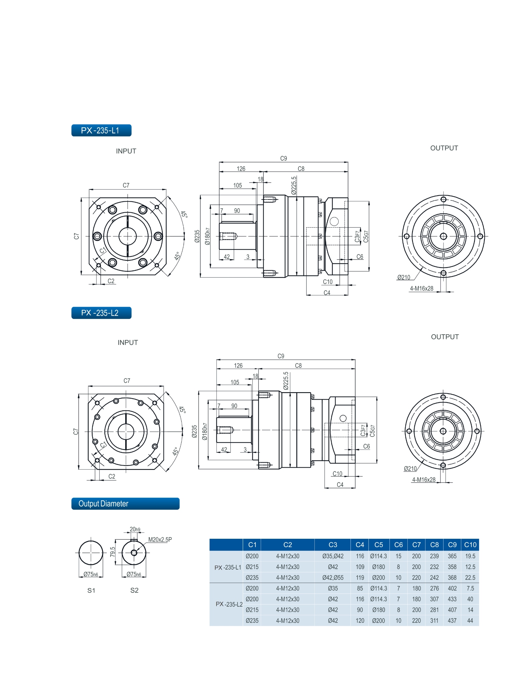 | Stage | Ratio | PX042 | PX070 | PX090 | PX120 | PX155 | PX205 | PX235 | ||